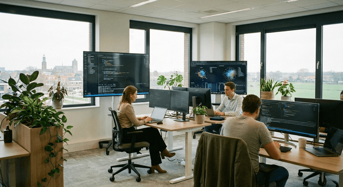Qua timing: een AI-scan geeft binnen 1–2 weken inzicht in de beste use-cases en risico’s. Een pilot die echt werkt in jullie omgeving duurt vaak 2–6 weken, afhankelijk van integraties en datatoegang. Samenwerking is meestal een combinatie van remote en op locatie (Zwolle, Enschede, Deventer, Hengelo, Almelo en omgeving), met een duidelijke owner aan jullie kant en vaste contactmomenten.