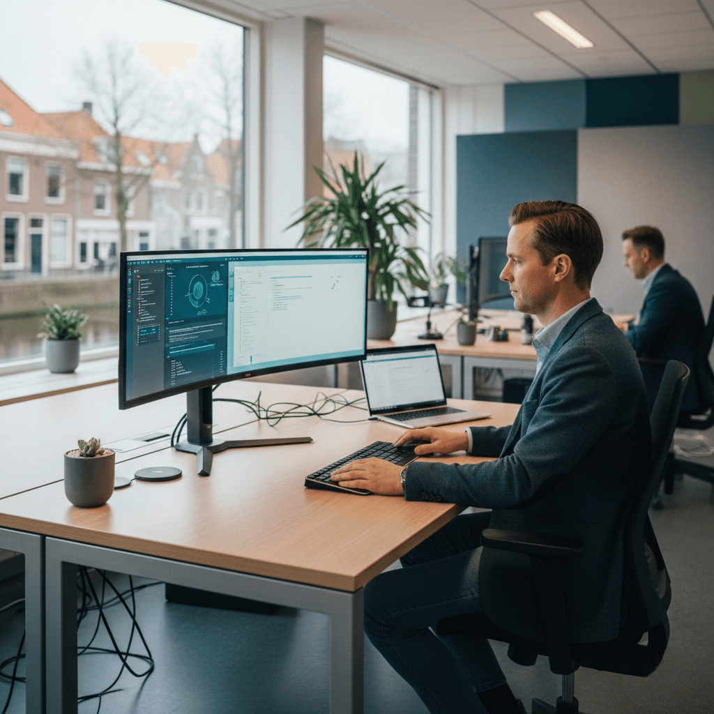 Meestal kan 80–90% remote: intake, analyse, bouw, testen en monitoring. On-site is vooral nuttig voor procesmapping met meerdere stakeholders en voor trainingen, zodat adoptie sneller gaat. Als lokale aanwezigheid belangrijk is, plan je één of twee on-site sessies en doe je de rest remote. Het belangrijkste is niet de vorm, maar dat je duidelijke deliverables en eigenaarschap hebt.