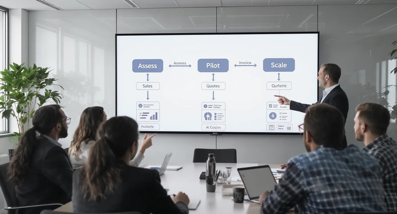 Kies één revenue kritische workflow met veel repetitie, bijvoorbeeld lead follow-ups, kwalificatie, offerte-opmaak, order intake, factuurmatching of afspraakplanning.